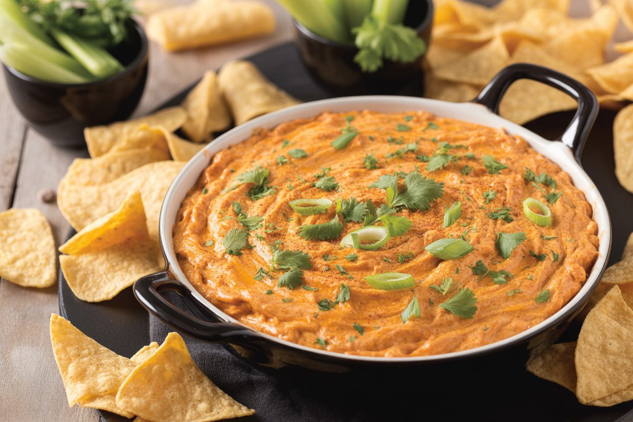 Serve this dip straight from the baking dish for a rustic, party-ready look. Pair it with tortilla chips, crackers, toasted baguette slices, or fresh veggie sticks like celery and bell peppers. For game day, keep it warm in a slow cooker on low heat so guests can serve themselves throughout the event.